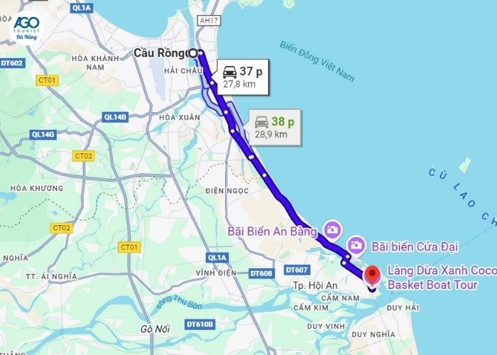 Hướng 1: Từ Đà Nẵng đi Rừng dừa Bảy Mẫu