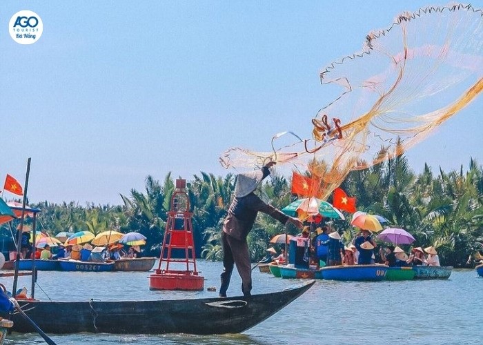 Một trong những điểm nhấn thú vị là các màn múa thúng, quay thúng điêu luyện do người chèo thuyền biểu diễn. Kết hợp cùng những câu hò, tiếng cười rộn ràng, hoạt động này tạo nên không khí sôi động, vui nhộn. Trải nghiệm này đặc biệt được du khách quốc tế yêu thích và thường mang lại nhiều khoảnh khắc đáng nhớ.