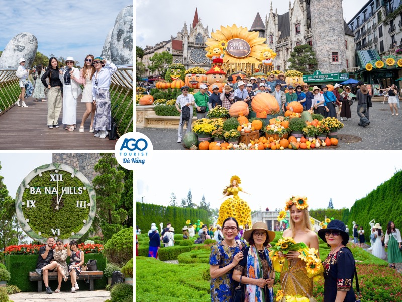 08h00: Xe và hướng dẫn viên AGO Đà Nẵng đón đoàn khởi hành đến Khu du lịch Bà Nà Hills - điểm đến nổi tiếng được mệnh danh là “Đường lên tiên cảnh” giữa lòng Đà Nẵng.
